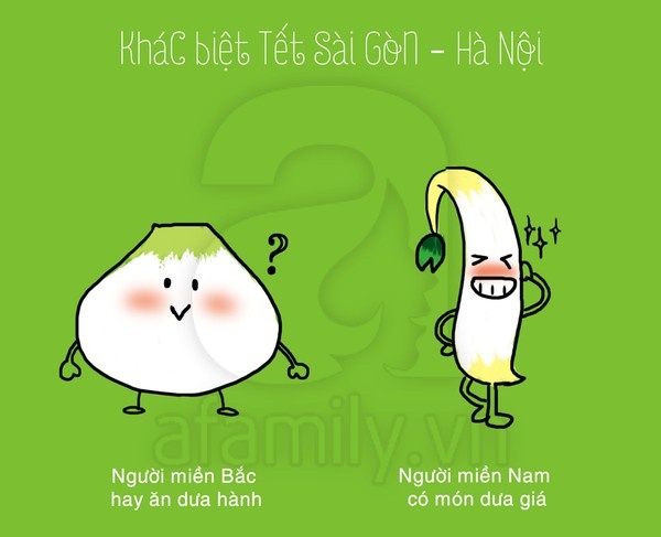 Người miền Bắc thường muối dưa hành để ăn Tết, còn người miền Nam có món dưa giá.