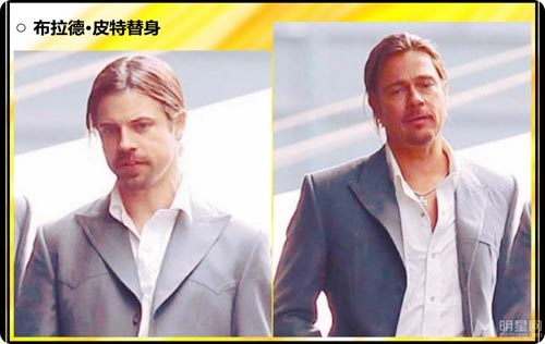 | Tài tử Brad Pitt (phải) và một bản sao đóng thế trong phim (trái). Rất khó để nhận ra sự khác biệt giữa hai người. |