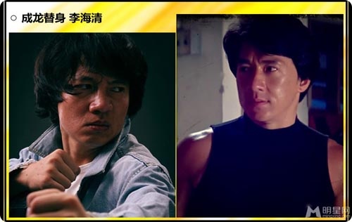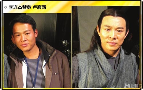 | Lý Liên Kiệt (phải) cũng có bản sao đóng thế có khuôn mặt khá giống nhau. |