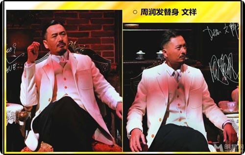 | Châu Nhuận Phát (trái) cùng bản sao Wenxiang giống tới 99% trong một bộ phim. Châu Nhuận Phát và người đóng thế khá thân thiết cả ở trong phim lẫn ngoài đời thực. |