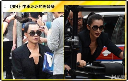 | Lý Băng Băng (trái) và người đóng thế cảnh hành động trong Transfomer 4 tại Hollywood. |