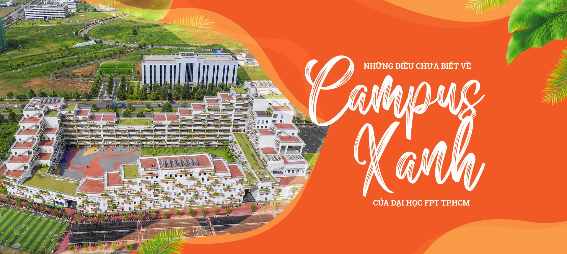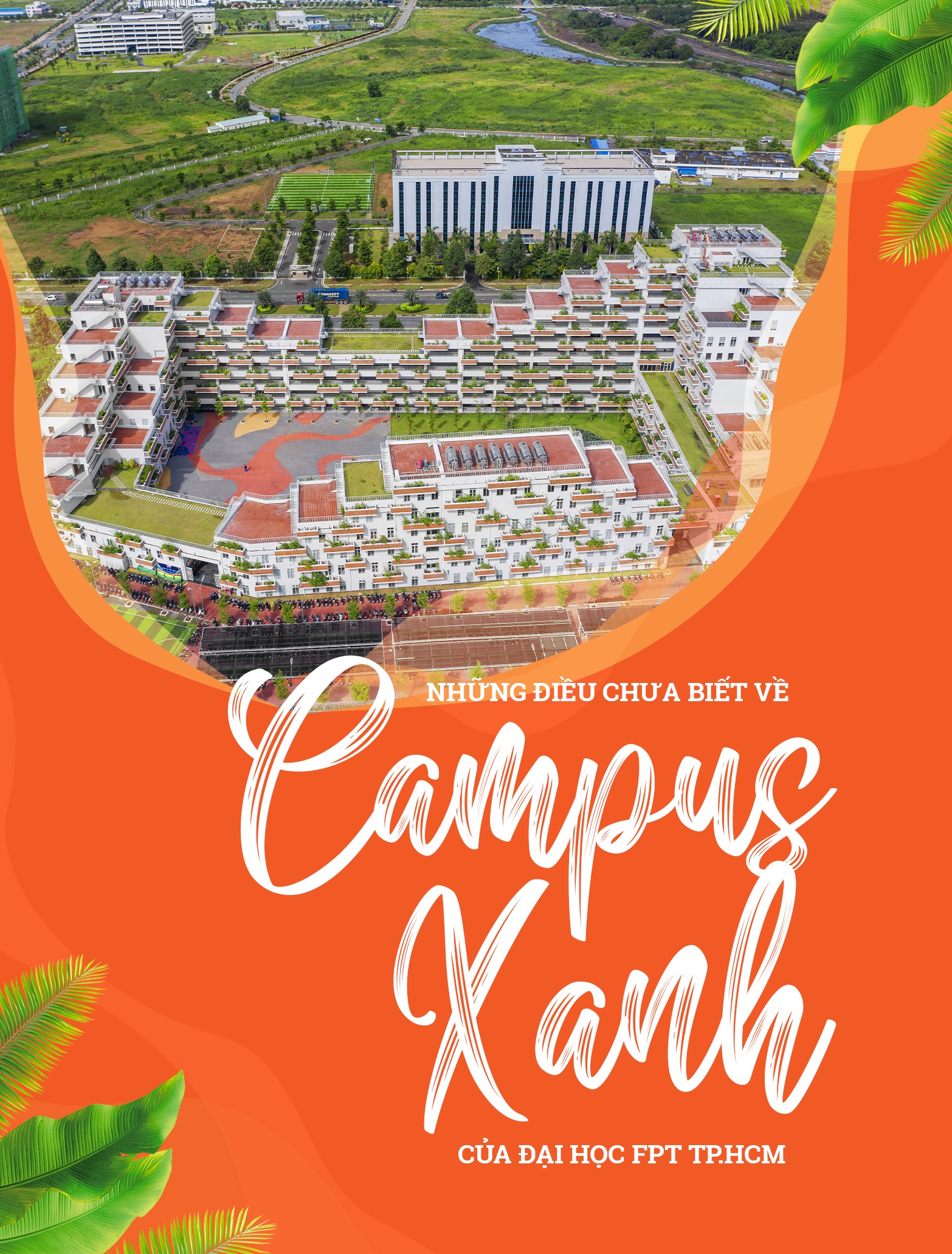 Lấy cảm hứng từ thiên nhiên Nam Bộ, campus của Đại học FPT TP.HCM được tạo hình như ngọn núi, bao phủ bởi cây cối, giúp sinh viên có cảm giác như học giữa cánh rừng nhiệt đới.