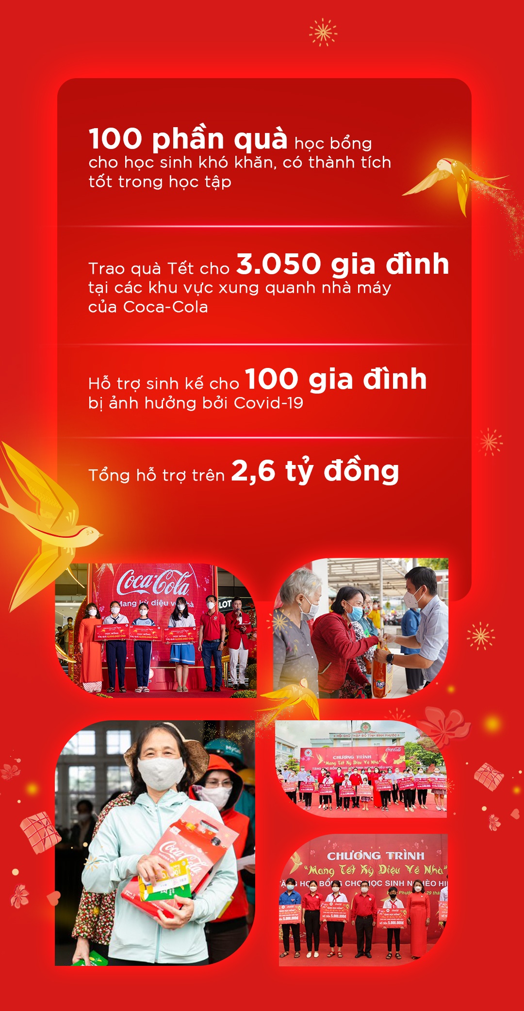 Chương trình vì cộng đồng lớn nhất của Coca-Cola Việt Nam trong dịp Tết Nhâm Dần có thể kể đến sự kết hợp cùng Hội Chữ thập đỏ, tại TP.Hồ Chí Minh và tỉnh Bình Phước, Coca-Cola trao tặng 100 học bổng trị giá 5 triệu đồng/suất cho các em học sinh trung học cơ sở, trung học phổ thông có gia đình bị ảnh hưởng bởi dịch Covid-19.