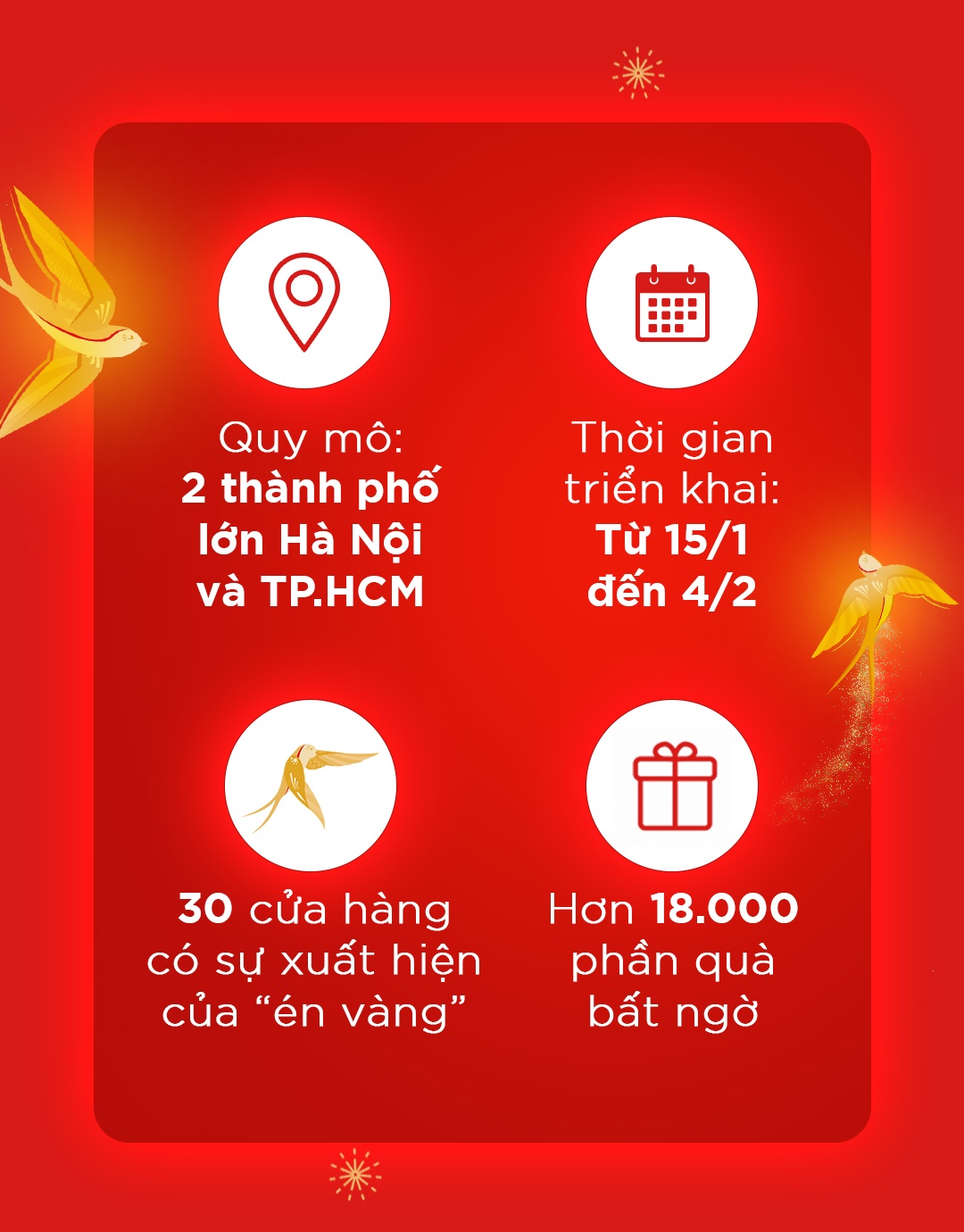 Khoảnh khắc bất ngờ của người dùng khi bất chợt bắt gặp hình ảnh én vàng tại cửa hàng, đồng thời nhận được thêm quà tặng may mắn là một trong muôn vàn điều kỳ diệu bé nhỏ mà nhãn hàng gửi trao, mong muốn góp phần tạo nên sự kỳ diệu cho mùa Tết mới.