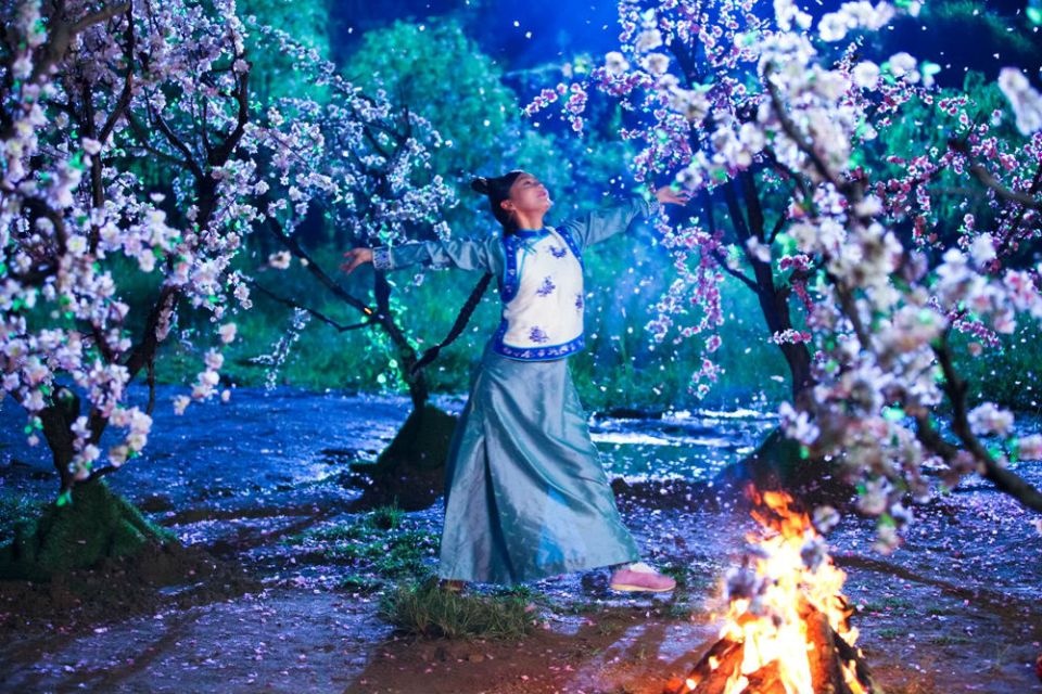 | Viên San San đẹp hút hồn với màn múa giữa rừng đào lung linh. |
