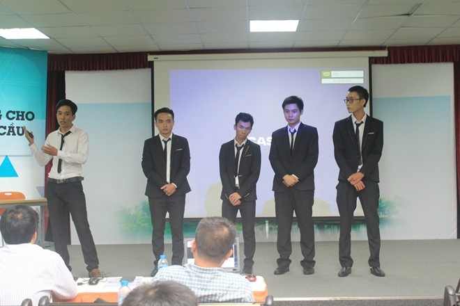 | 5 chàng sinh viên tại buổi thuyết trình đồ án. |