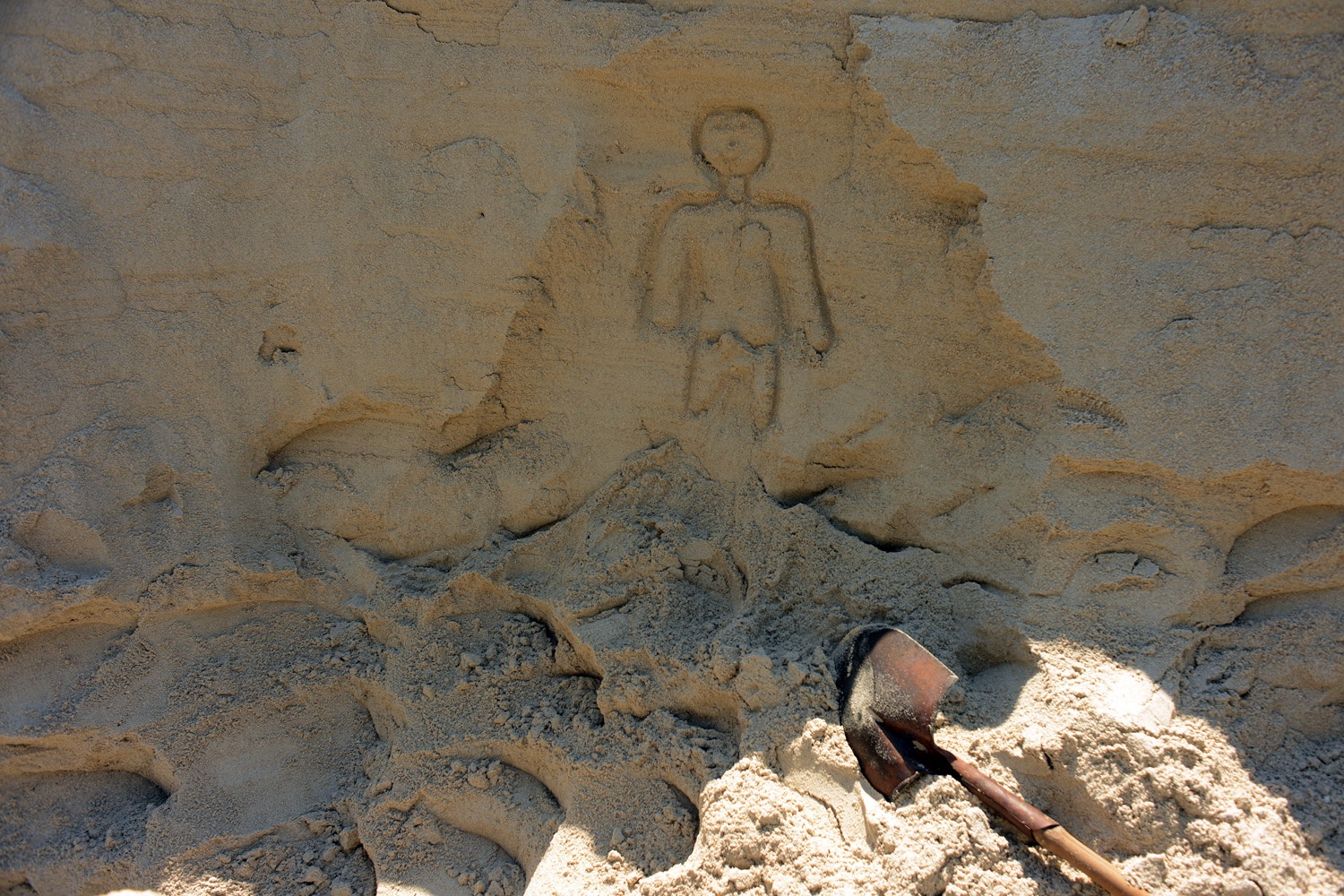 | Bức tranh do một cậu bé khắc trên cát, nơi những người nông dân khai thác cát để trồng hành tỏi. Lý Sơn còn được gọi là vương quốc của hành tỏi. |