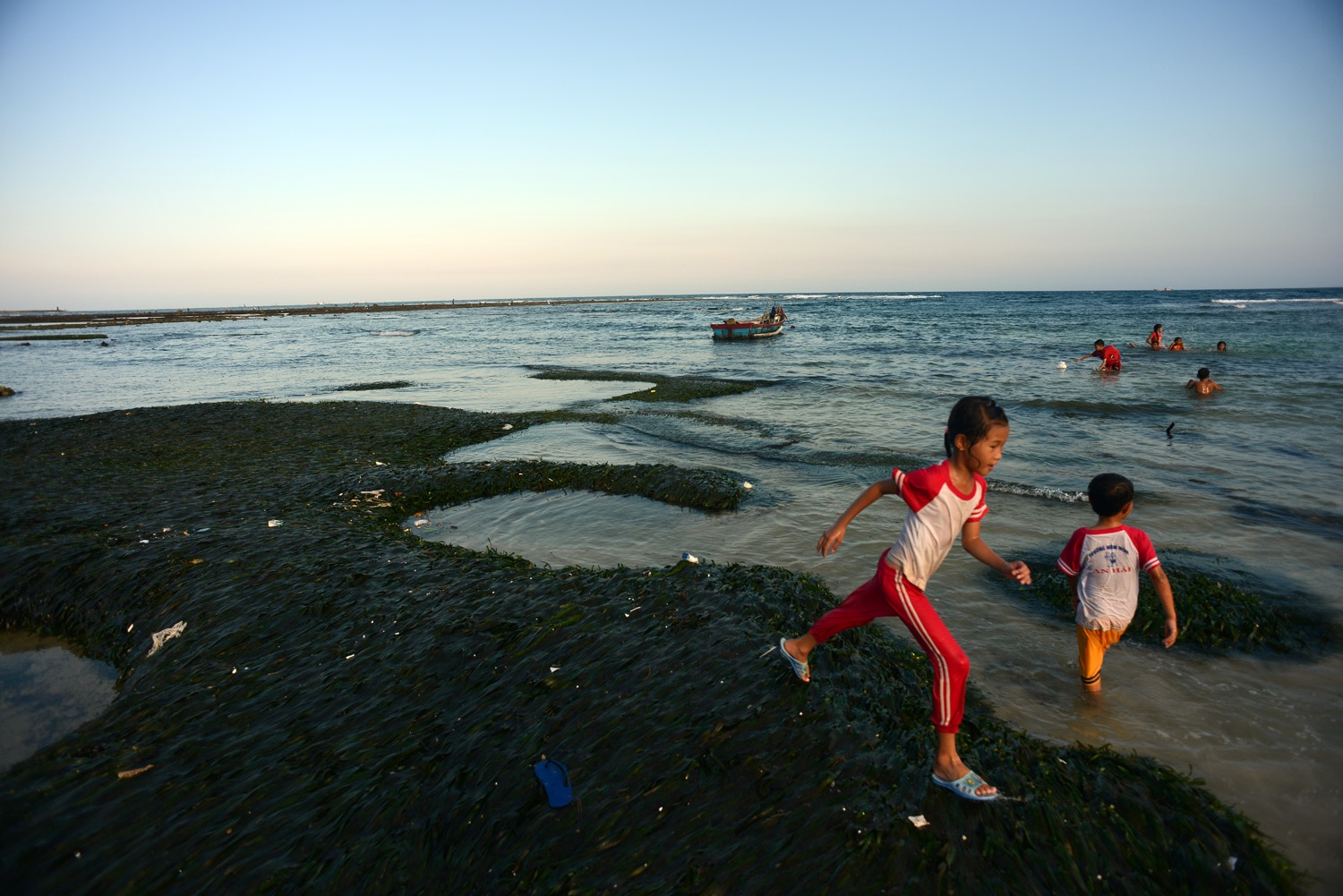 | Những đứa trẻ làm quen với biển từ khi lọt lòng. Lý Sơn là quê hương của những đội hùng binh Hoàng Sa kiêm quản Bắc Hải. Đến nay, ngư dân Lý Sơn vẫn coi ngư trường Hoàng Sa - Trường Sa là vùng đánh bắt truyền thống của cha ông. |