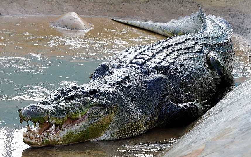 | Lolong, nặng 1 tấn và dài 6,4 m, là con cá sấu lớn nhất thế giới từng bị bắt năm 2011. Đội thợ săn mất 3 tuần để bắt và cần 100 người để đưa nó lên bờ. Ảnh: AFP/GETTY |
