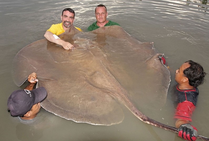 | Một con cá đuôi gai độc nước ngọt khổng lồ ở Thái Lan. Loài này có thể nặng tới 589 kg. Ảnh: BNPS |