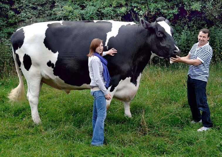 Con bò sữa giống Friesian cao 1,9 m và nặng 1,2 tấn sống ở một trang trại tại Kingswood, Herefordshire, Anh.