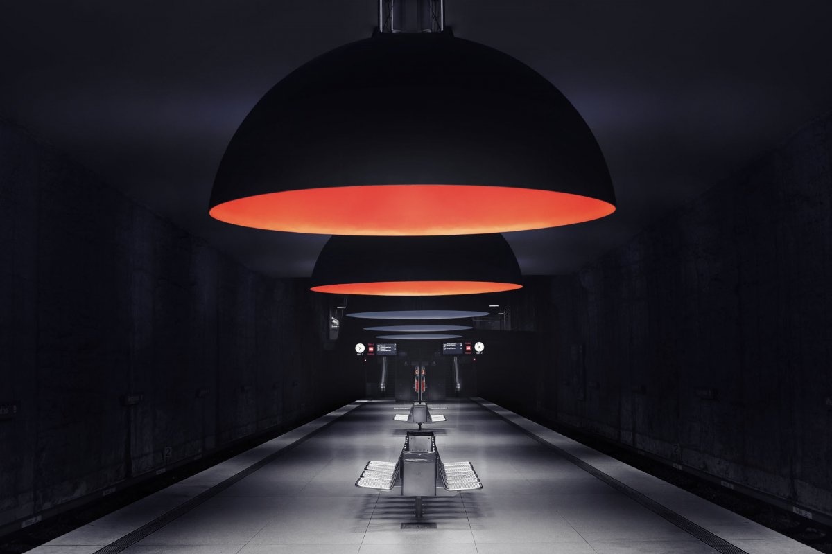 Ánh đèn vàng mờ ảo tại ga tàu điện ngầm Westfriedhof ở thành phố Munich, Đức. Frank thường tìm địa điểm chụp ảnh qua Internet. |
