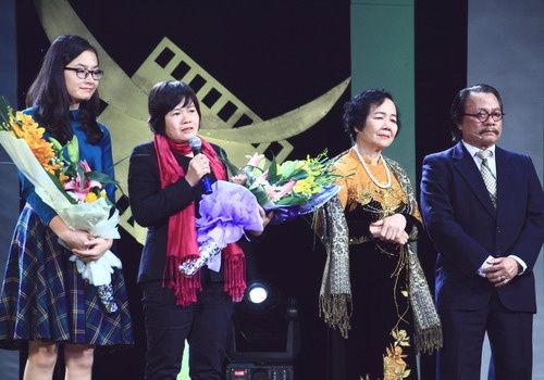 | Đạo diễn Nhuệ Giang bày tỏ sự xúc động trong khoảnh khắc tôn vinh và kỷ niệm 100 năm ngày sinh của đạo diễn, NSND Phạm Văn Khoa tại lễ trao giải Cánh diều 2013. |