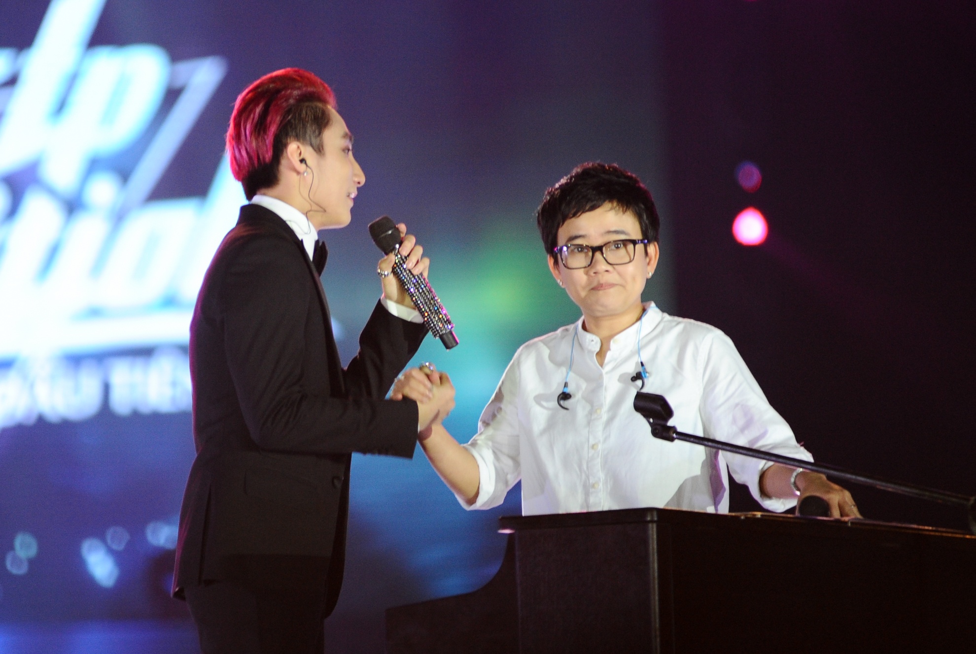 | Sơn Tùng song ca bài hát Mẹ yêu cùng ca/nhạc sĩ Phương Uyên. Cựu thành viên nhóm 3 Con Mèo cũng đồng thời là giám đốc âm nhạc cho live show của Sơn Tùng. |