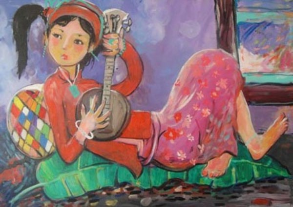 Bên cạnh những tác phẩm liên quan tới cuộc sống trẻ thơ của mình cũng như tại Sydney, Jacquelyn Ngô còn vẽ không ít những hình ảnh quen thuộc của Việt Nam như áo dài dân tộc hay nhạc cụ truyền thống.