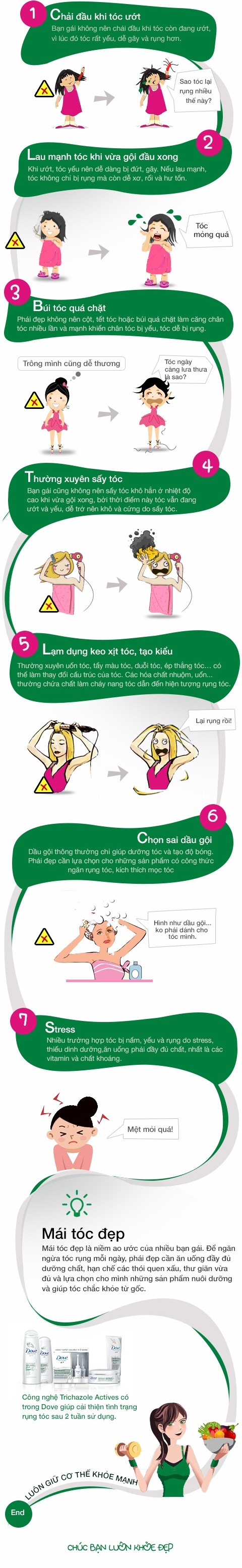 Tóc rụng là nỗi lo lắng thường trực của phái đẹp. Tuy nhiên, ít người biết rằng chỉ bằng cách thay đổi các thói quen không tốt đã có thể hạn chế tối đa lượng tóc rụng mỗi ngày.