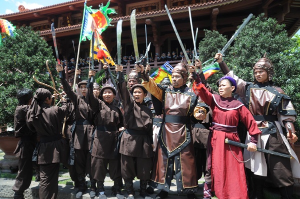 | Quân lính Tây Sơn mặc đồng phục trong phim Tây Sơn hào kiệt. |