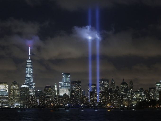| Ánh sáng công suất lớn rọi lên bầu trời đêm New York trong lễ kỷ niệm lần thứ 13 vụ khủng bố ngày 11/9/2001 làm 2.996 người thiệt mạng. Vị trí đặt những chiếc đèn chính là khu vực hai tòa tháp Trung tâm Thương mại Thế giới bị đánh sập trong sự kiện làm thay đổi thế giới. Ảnh: AP |