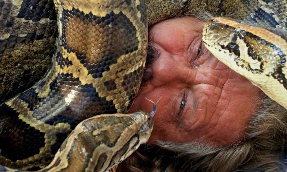 | Người đàn ông chơi đùa cùng 5 con trăn khổng lồ trên quảng trường Thánh James ở Brno, Cộng hòa Czech. Mỗi con trăn dài 5 m, nặng hơn 500 kg. Ảnh: EPA |