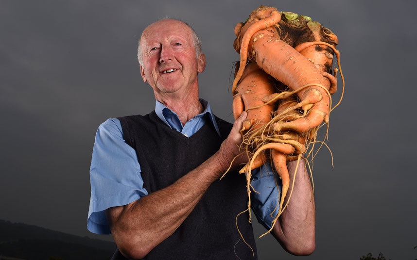| Lão nông Peter Glazebrook ở Newark, New Jersey, Mỹ thu hoạch củ cà rốt nặng 9 kg. Ảnh: REX |