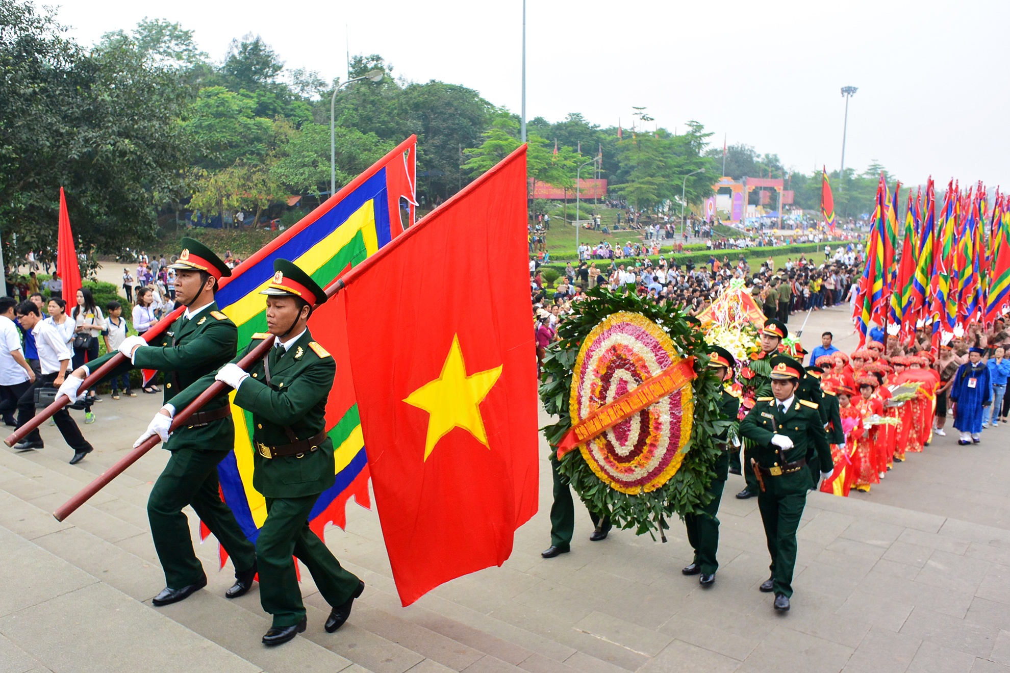 Sáng 28/4, lễ hội Đền Hùng tưởng nhớ các Vua Hùng đã diễn ra tại núi Nghĩa Lĩnh (Việt Trì, Phú Thọ). Ước tính trong suốt một tuần diễn ra, đã có hàng triệu người dân từ khắp cả nước đổ về dâng hương. Ảnh: Anh Tuấn. Xem thêm