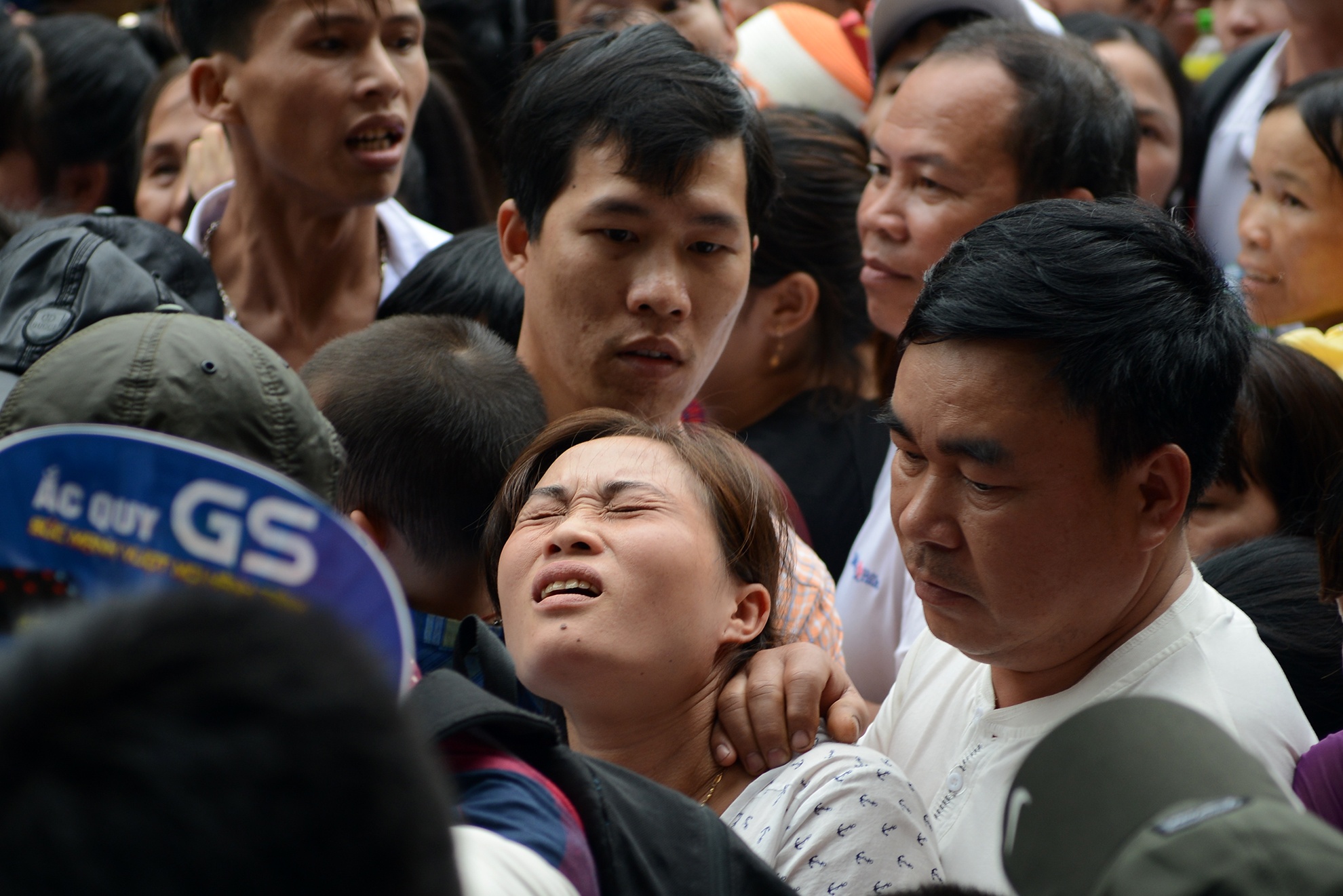 Do lượng người quá đông, lối lên đền lại nhỏ nên tình trạng chen lấn đến ngạt thở đã xảy ra. Nhiều du khách còn trèo lối tắt để lên đền Thượng. Ảnh: Anh Tuấn. Xem thêm