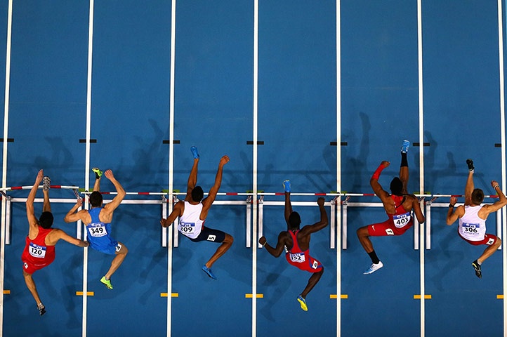 | Hình ảnh các vận động viên tham dự nội dung vượt rào 60m của nam. |