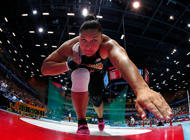 | VĐV Valerie Adams của New Zealand chuẩn bị cho cú ném tạ nữ. |