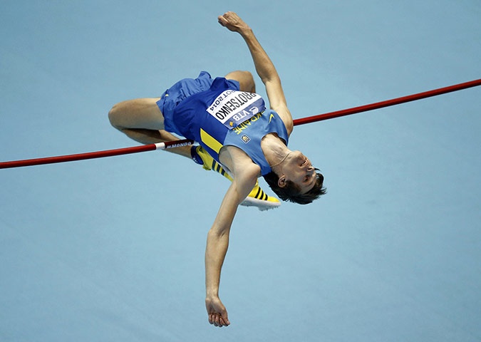 | VĐV của Ukraine Andriy Protsenko cố rướn hết sức để vượt qua nội dung nhảy cao nam. |