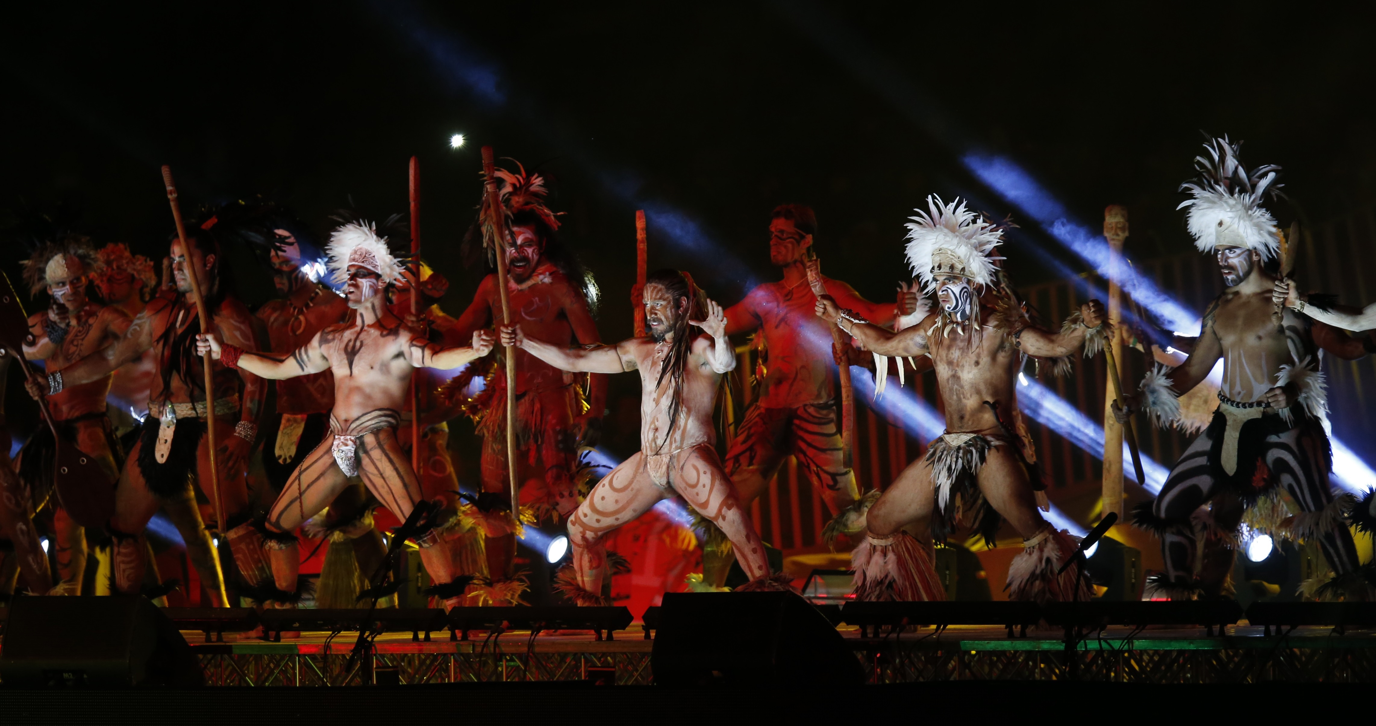 | Các vũ công hóa thân thành những chàng trai thổ dân trên đảo Eastern. Trông bề ngoài của bộ tộc này rất hung dữ. Tuy nhiên, thực tế họ đều là những người dễ gần và mến khách. |