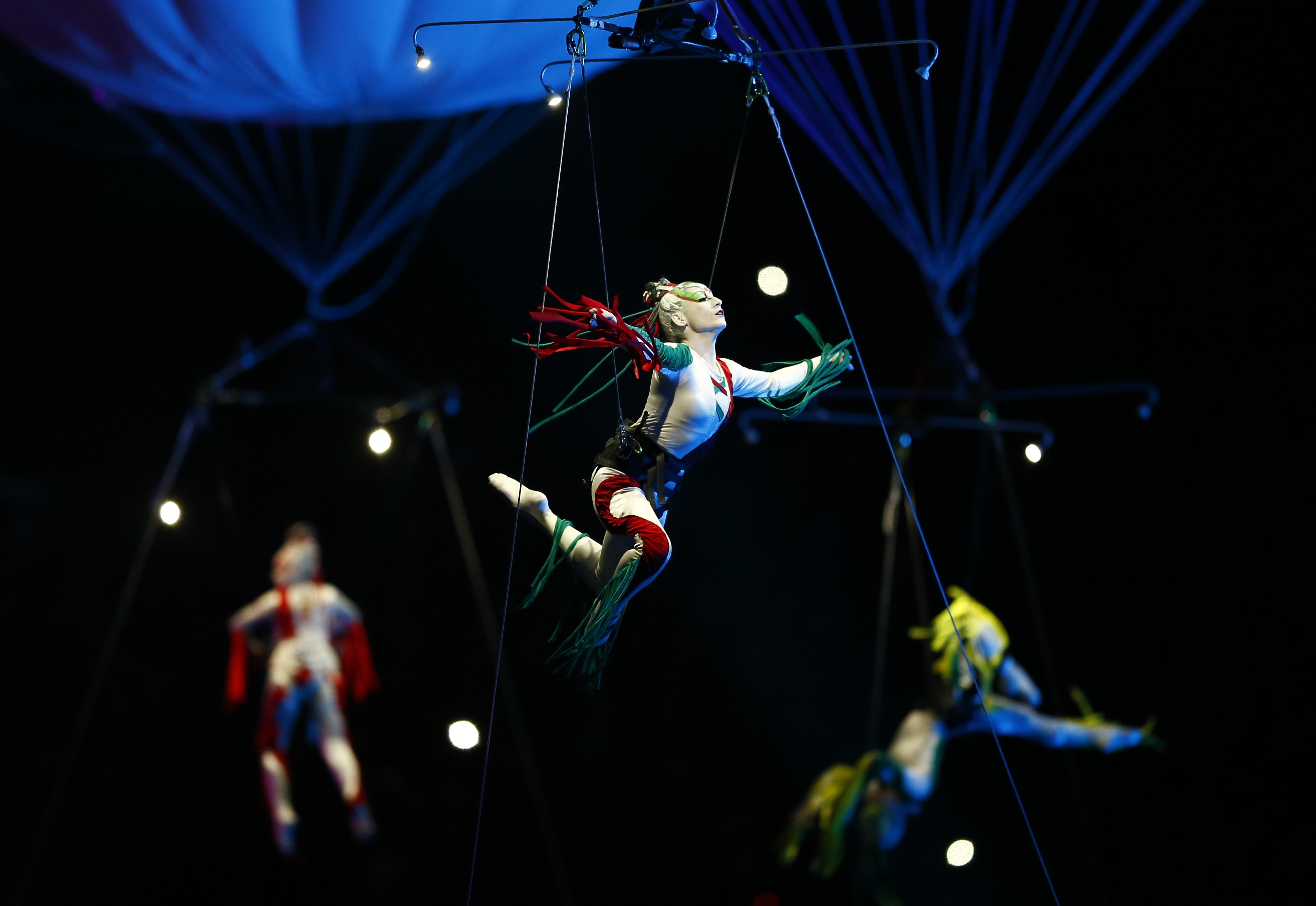 | Màn trình diễn bay và nhào lộn trên không của các vũ công nữ. Trông họ uyển chuyển như những chú chim đầy màu sắc ở núi rừng Nam Mỹ. |