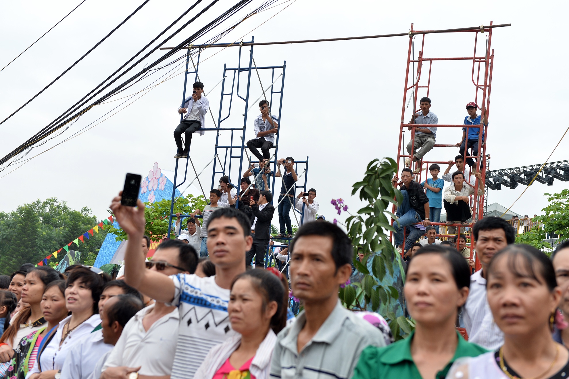 Hàng chục nghìn khán giả tìm vị trí có thể quan sát đoàn diễu binh, diễu hành.