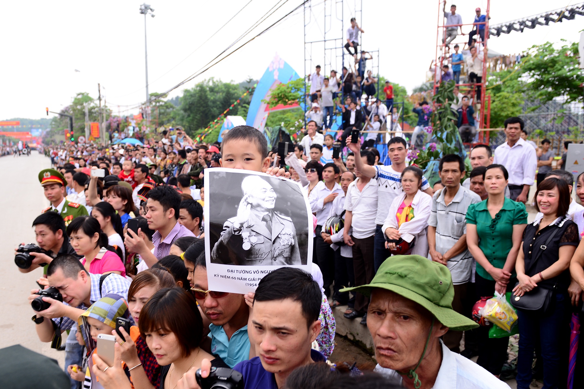 Tại lễ mít tinh và diễu binh, diễu hành kỷ niệm 60 năm chiến thắng Điện Biên Phủ sáng 7/5, ngay từ 6h đông đảo người dân địa phương và từ các tỉnh tập trung về quanh sân vận động trung tâm để đón xem.
