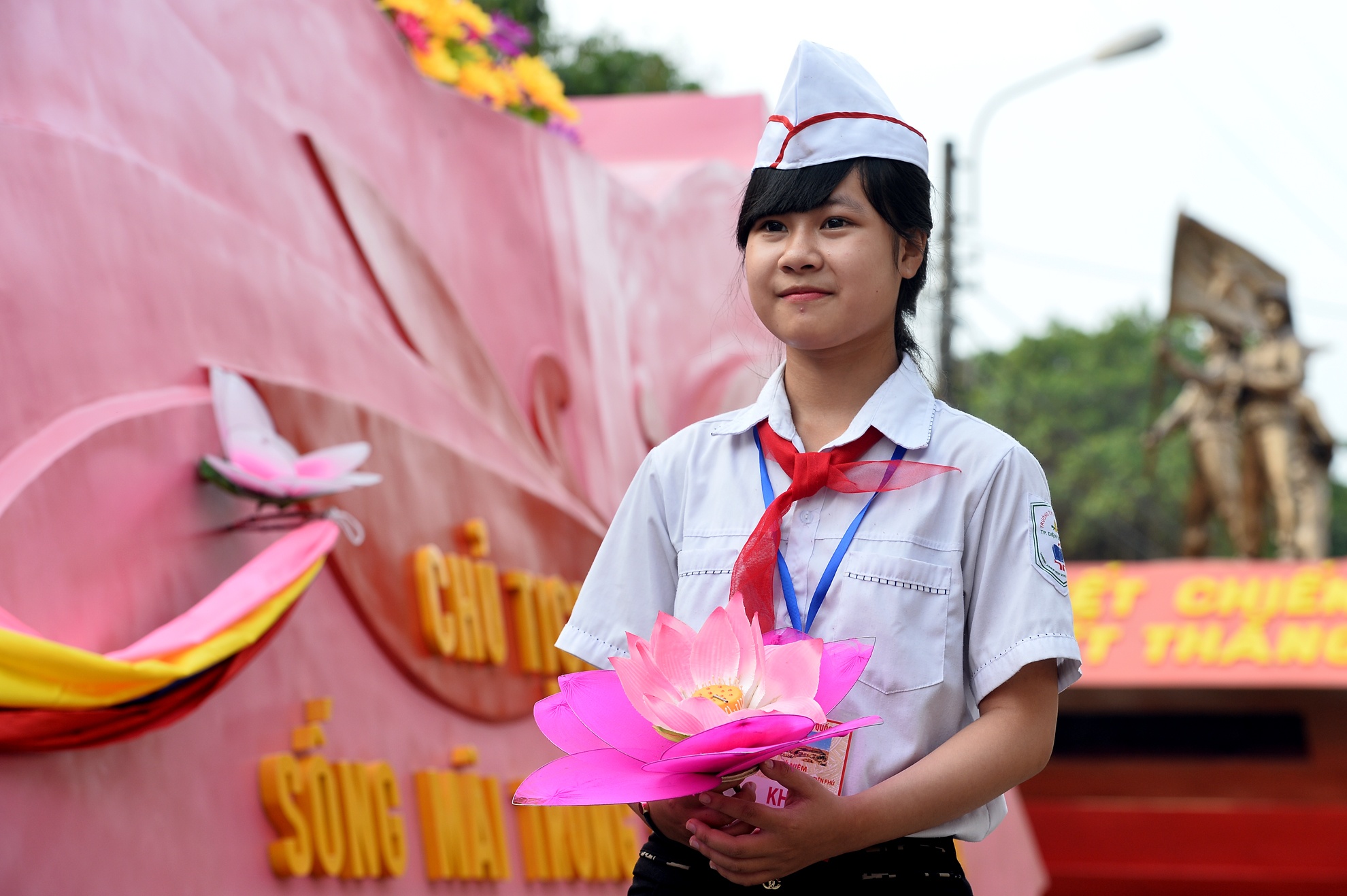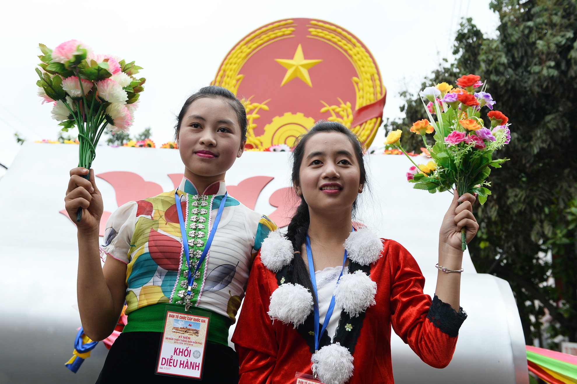 Đảm nhiệm diễu hành hai bên xe biểu trưng rước quốc huy và ảnh Chủ tịch Hồ Chí Minh là dàn học sinh xinh xắn đến từ các trường phổ thông nổi tiếng của thành phố Điện Biên.