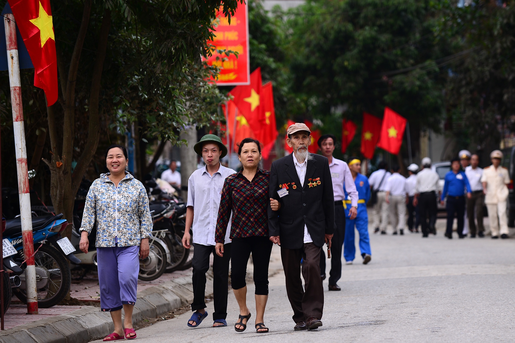 Các cựu chiến binh trên mặt trận Điện Biên Phủ, sau 60 năm nhiều cụ đã già yếu, đi lại phải có người thân giúp đỡ.