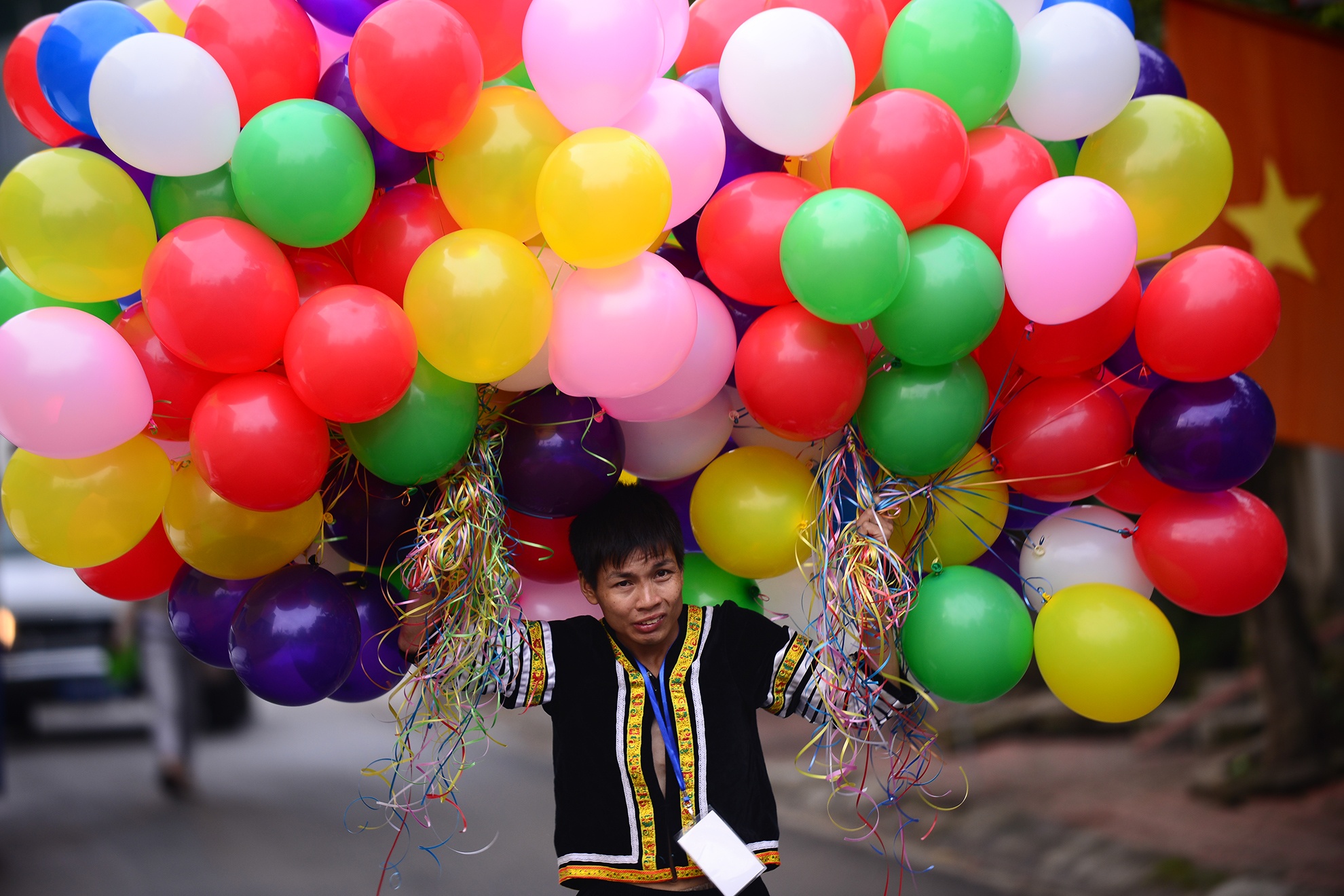Anh chàng bán bóng bay được dịp đắt hàng.