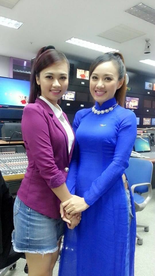 | Trong bức ảnh chụp chung với người đồng nghiệp, BTV lên hình ấn tượng nhất của VTV 2014 - Hoài Anh - khiến khán giả bật cười khi kết hợp áo dài với quần bò. Ít ai biết, công việc của người BTV vô cùng bận rộn, đặc biệt là công tác chuẩn bị tin tức trước giờ lên sóng, cùng với việc, chỉ nửa người trên xuất hiện trên màn hình, nên chuyện những người cầm sóng như Hoài Anh, chỉ xinh đẹp và lộng lẫy ở phía trên là điều dễ gặp. |