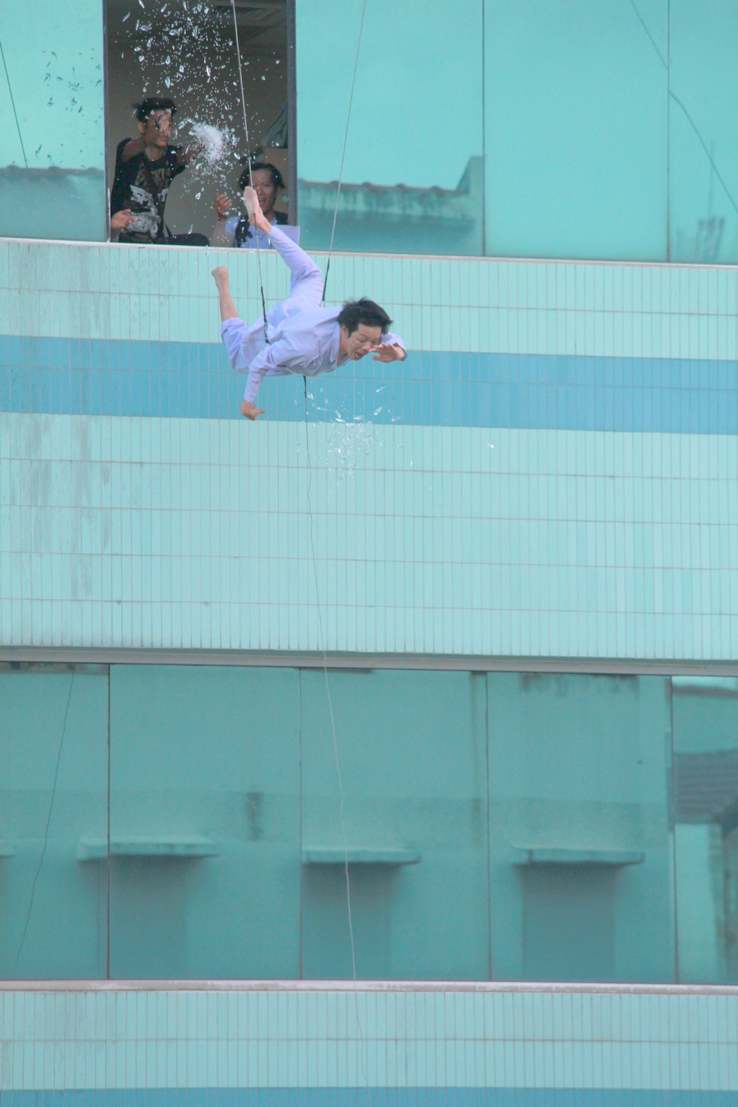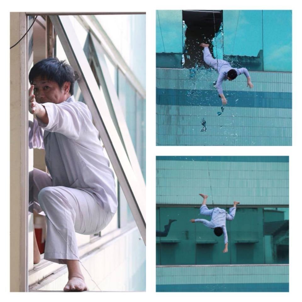 | Ít người biết cảnh chị Hội lao ra ngoài từ tầng cao của bệnh viện do chính Thái Hòa thực hiện mà không cần đến diễn viên đóng thế. |