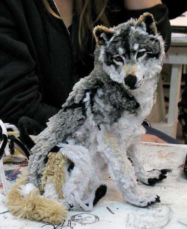 | Một con sói Bắc Cực làm từ dụng cụ lau chùi. |