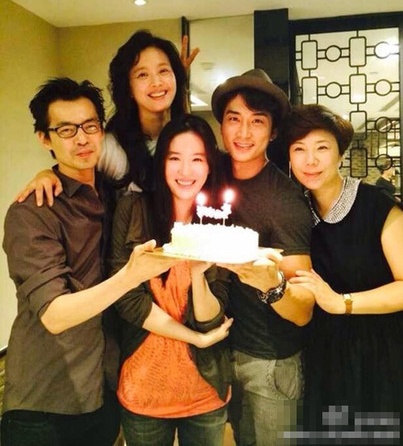 | Song Seung Hun chúc mừng sinh nhật Lưu Diệc Phi trên phim trường Tình yêu thứ 3. |
