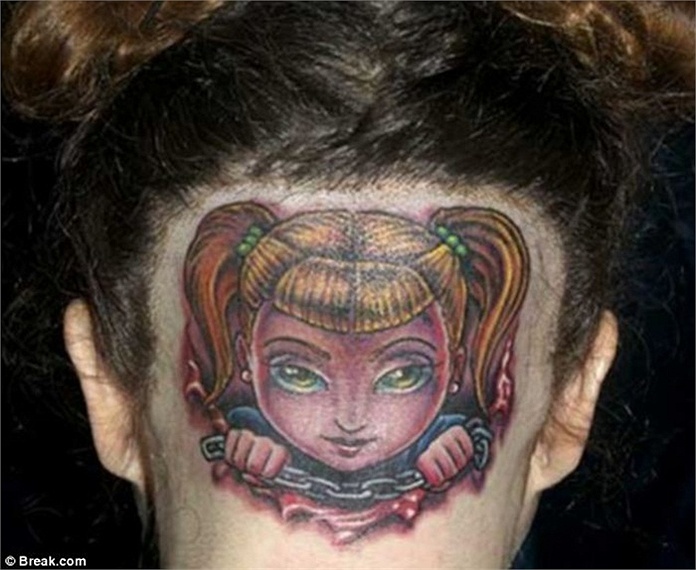| Hình xăm độc đáo phía sau đầu của một cô gái. |