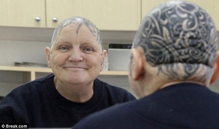 | Không phải cô gái nào cũng đủ can đảm để cạo đầu xăm như thế này. |
