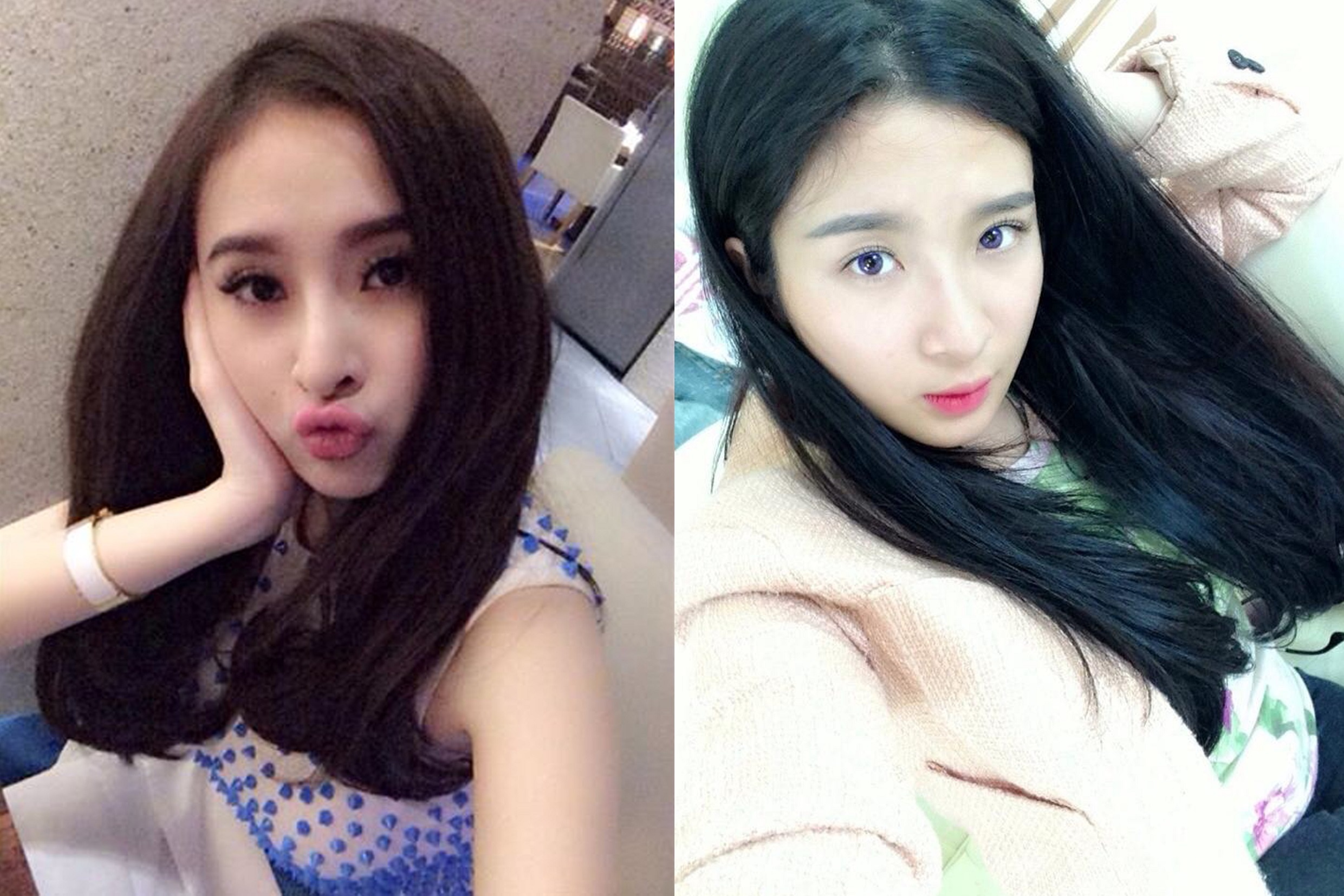 | Anh Thư (bên phải) sở hữu làn da trắng, chiếc mũi cao, khuôn mặt thon đều rất giống Angela Phương Trinh. |
