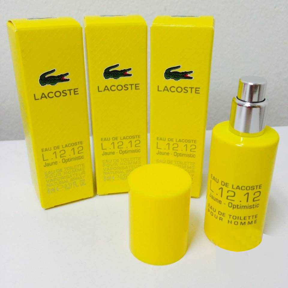 | Lacoste L12.12 Jaune Optimistic 8 ml cho phái mạnh những trải nghiệm mới mẻ, sảng khoái cho ngày mới mới hương chanh thanh mát. Giá gốc 495.000 đồng, giá khuyến mãi 300.000 đồng. |