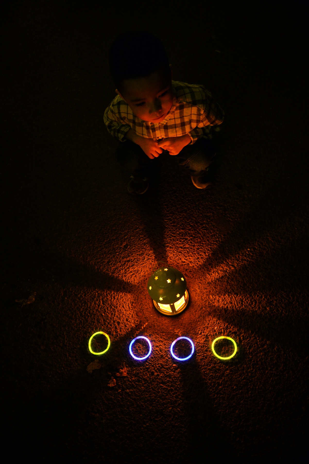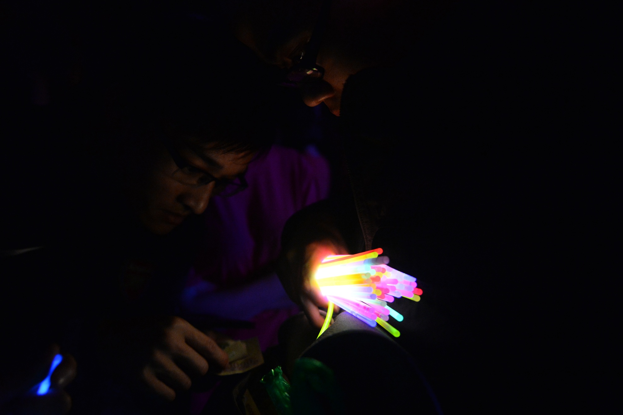 | Những chiếc vòng phát sáng các màu màu xanh, đỏ, vàng trở thành đồ chơi hữu dụng trong bóng tối. |