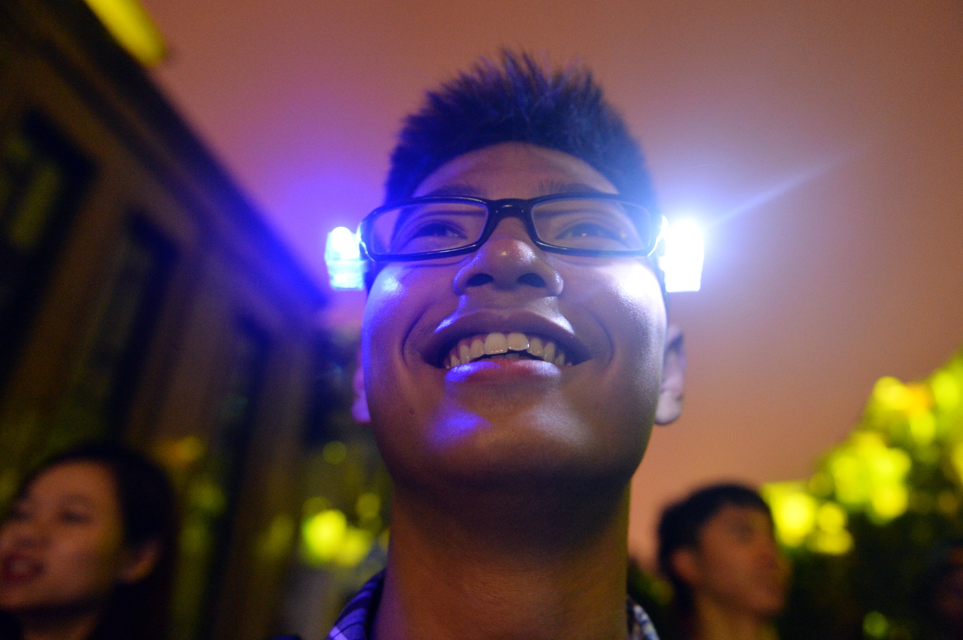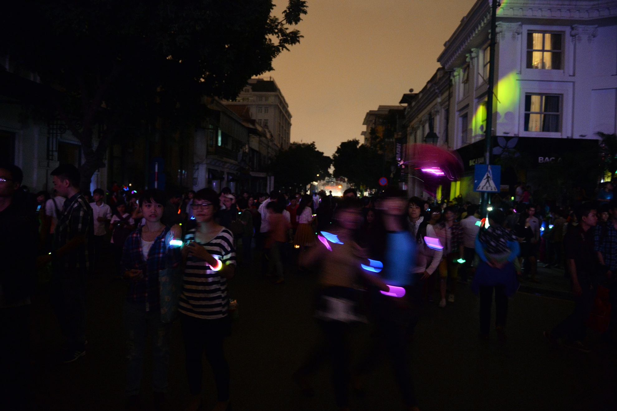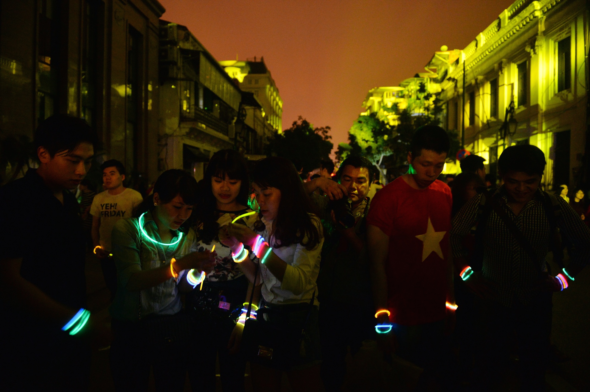 | Để thay cho việc thắp nến lại càng không tốt cho môi trường xanh sạch đẹp, năm nay các vòng đeo tay phát sáng được sử dụng rộng rãi hơn. Nhiều người đã đi bán rong loại đồ chơi này tại khu vực diễn ra sự kiện. |
