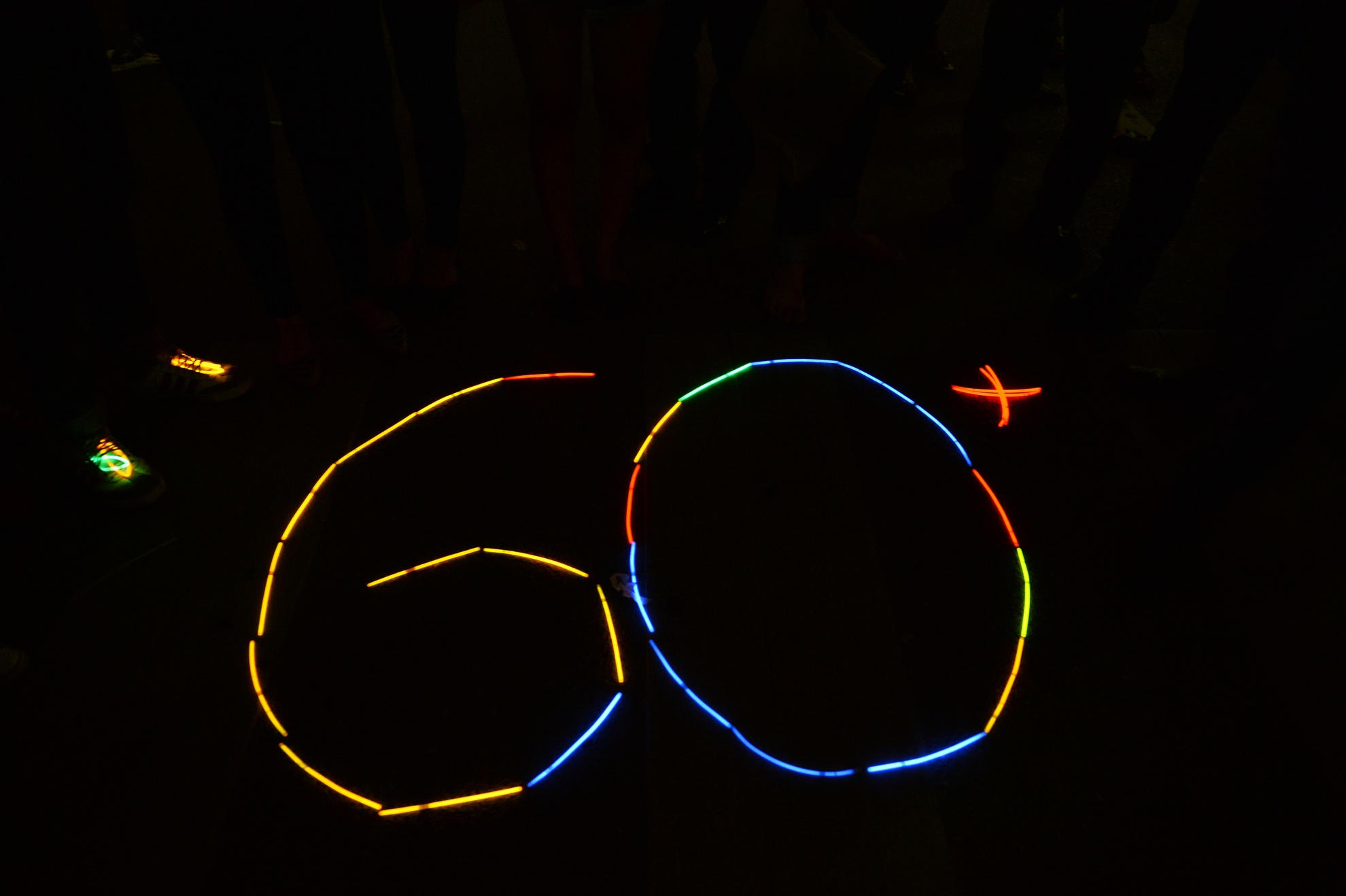 | Một số thanh niên xếp hình con số 60 cộng, biểu tượng của Giờ Trái đất trên đường. |