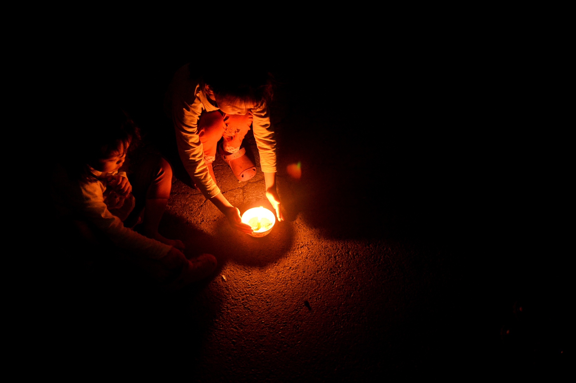| Tại một quán cà phê trên phố Phan Chu Trinh, điện tắt hết, anh Quốc Tuấn, nhân viên phục vụ bê nến ra vỉa hè cho khách. |