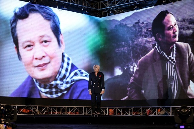 | 8. Sơn Tùng cúi xuống tưởng niệm cố nhạc sĩ An Thuyên trong một chương trình vào ngày 5/7. Nam ca sĩ 9X tiết lộ, tác giả Ca dao em và tôi là người có ảnh hưởng rất lớn đối với sự nghiệp âm nhạc của mình. Nhạc sĩ An Thuyên đột ngột qua đời vào ngày 3/7/2015. Năm 2015 cũng chứng kiến sự ra đi của nhiều nghệ sĩ gạo cội gây tổn thất lớn cho riêng gia đình, người thân và nền âm nhạc Việt Nam. Ảnh: Thành Luân. |
