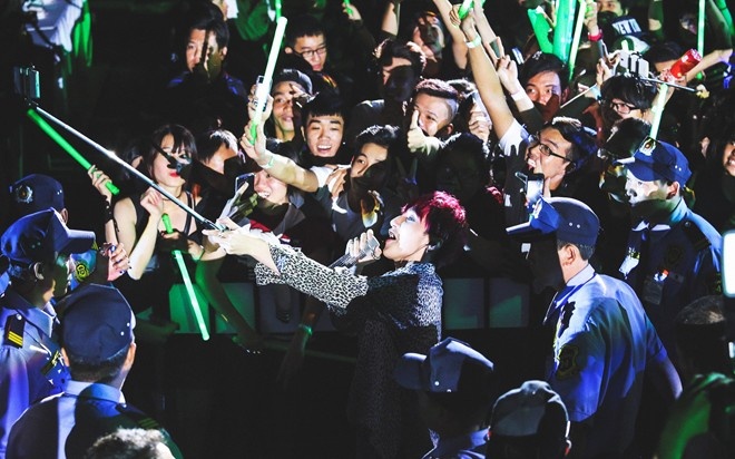 | 2. Sơn Tùng chụp ảnh "selfie" cùng người hâm mộ trong live show đầu tiên trong sự nghiệp ca hát ở tuổi 21. Chỉ cần nhìn bức ảnh này khán giả có thể thấy nỗ lực của chàng trai gốc Thái Bình mà bỏ qua mọi tin đồn, bê bối của nam ca sĩ trẻ này. Làm live show ở sân vận động khi tuổi đời, tuổi nghề còn ít là thành công không phải nghệ sĩ nào cũng đạt được. Ảnh: Nguyễn Thành. |